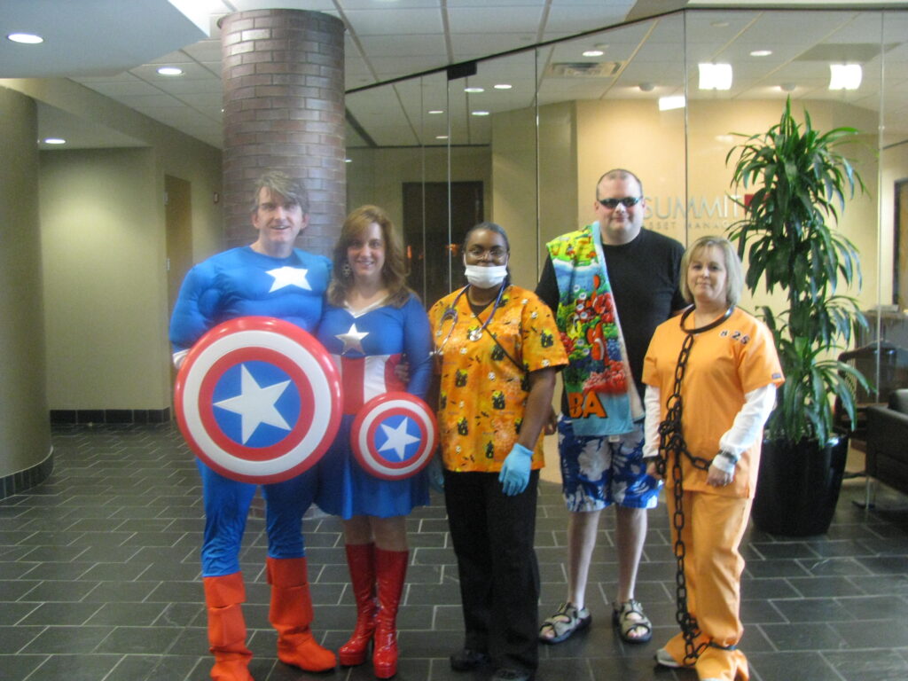 Halloween Fun 2009 – “Mr. and Mrs. Captain America”, a “Nurse”, “Prisoner”, and “Beachgoer”